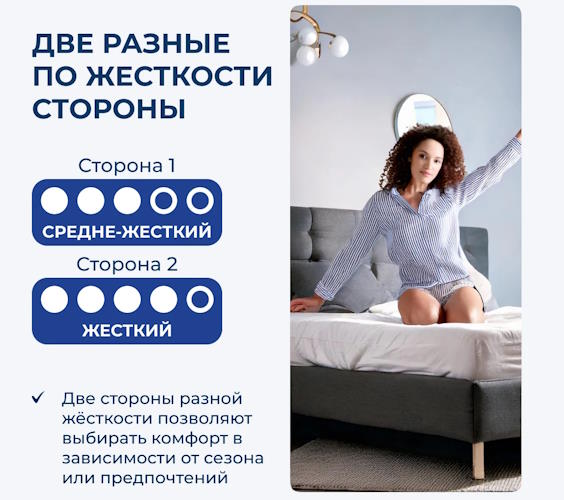 | Жесткость у матраса | Разносторонняя жесткость |