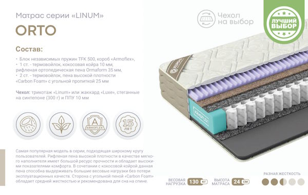 • Высота (Толщина): Беспружинные модели — от 16–18 см, матрасы с независимым блоком S-500/S-1000 — от 20–25 см.