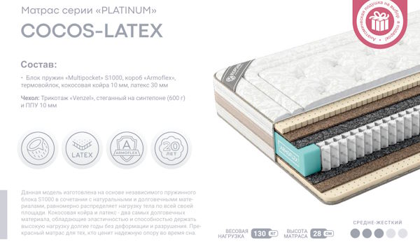 | Тип матраса | Пружинный - Multi Pocket S1000 |
