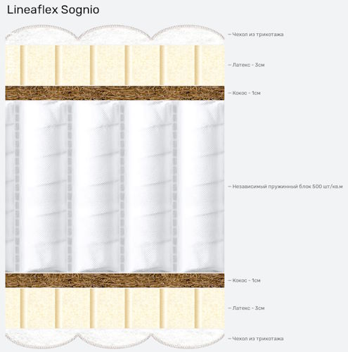 Анатомические матрасы линии ERGONOMICA - это матрасы класса «deluxe», сочетающие в себе истинное итальянское качество, передовой дизайн и лучшие материалы. Матрас Sognio для наиболее требовательных к мягкости, комфорту и уюту людей.
