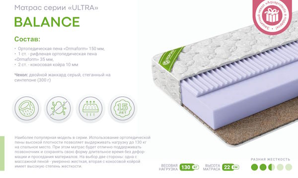 • Высота (Толщина): Беспружинные модели — от 16–18 см, матрасы с независимым блоком S-500/S-1000 — от 20–25 см.