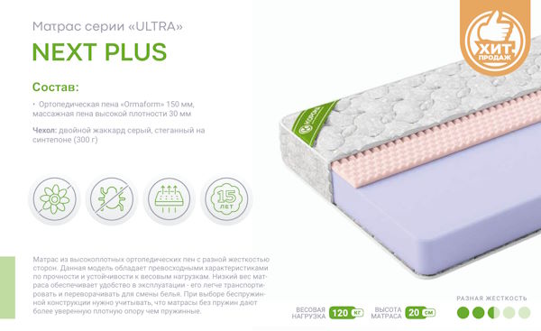 • Высота (Толщина): Беспружинные модели — от 16–18 см, матрасы с независимым блоком S-500/S-1000 — от 20–25 см.