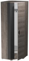 В угловом шкафу Ханна располагаются полки и выдвижная штанга для вешалки. Дополнительно комплектуется полками из этой коллекции.Угловой шкаф не только практичен наполнением, с его помощью можно составить угловую секцию шкафов. Полноценная система хранения станет незаменимой для вас.